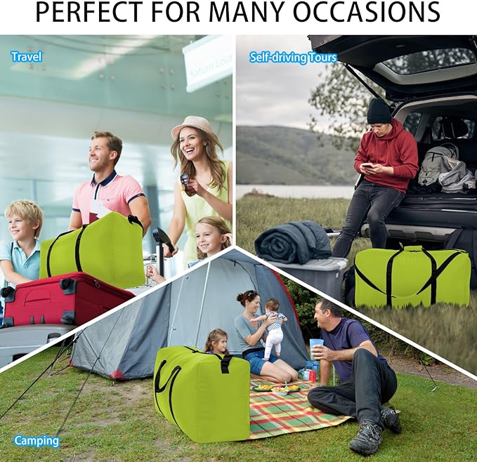 - EASY TO CARRY LIGHTWEIGHT EXTRA LARGE DUFFEL BAG:The duffle bag has a long and comfortable padded carrying strap and handles for different options to carry. Can be folded to small size, easy to carry as a "JUST IN CASE" bag for your trip.