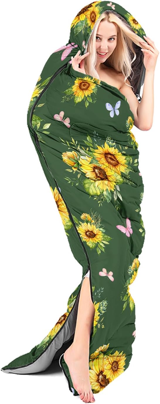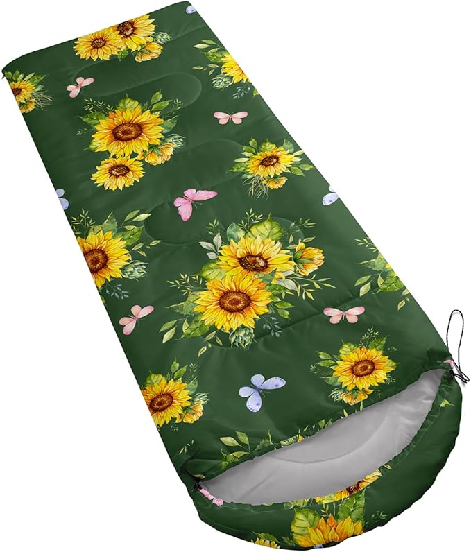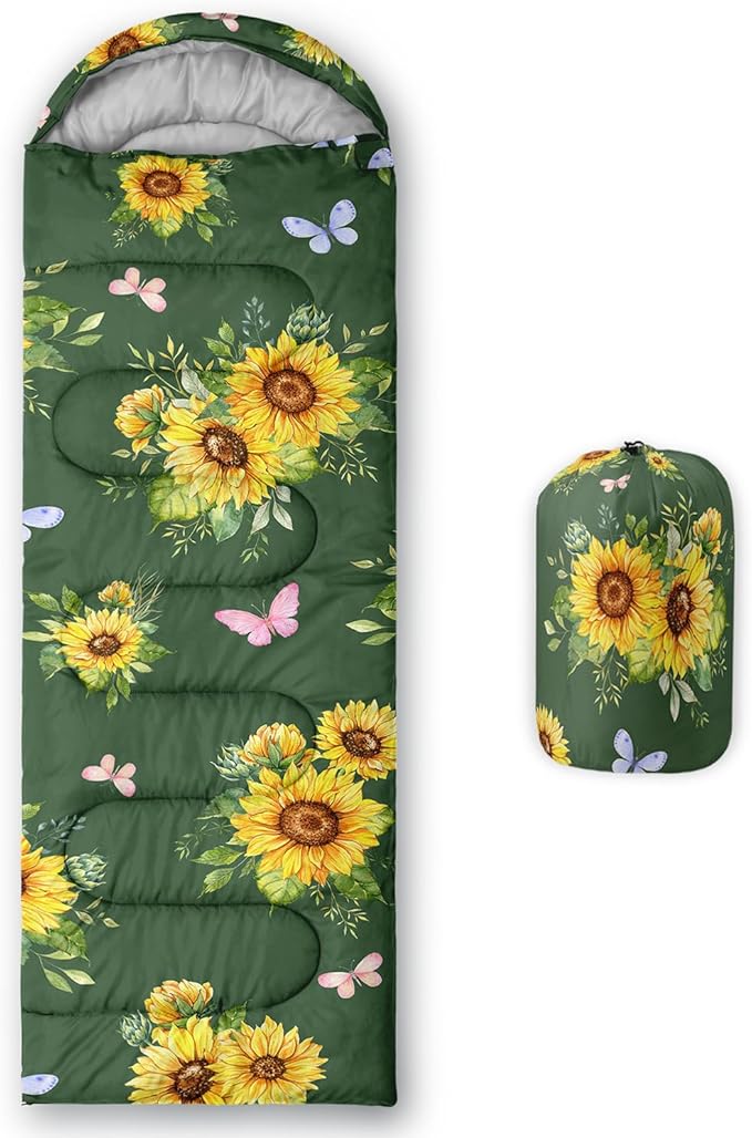 - 🔥Sunflower Great For All Seasons- Our camping sleeping bags are designed to give you a good night's sleep. Ideal for spring,summer,fall,and winter,rated from 32°F to 77°F (optimal comfort temperature is 50°F to 65°F). Stay comfortable and warm in any condition at normal altitude. Can be used for any outdoor adventure,class camping,summer camps,couch surfing,indoor blanket,and as an emergency blanket for vehicles.