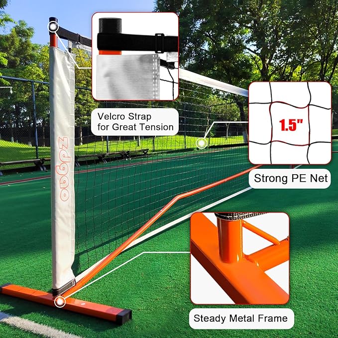 Zdgao Pickleball Net for Driveway with 22FT Regulation Size Pickleball Net, 4 Outdoor Pickleballs and Carry Bag, Weather Resistance Strong Steel Frame