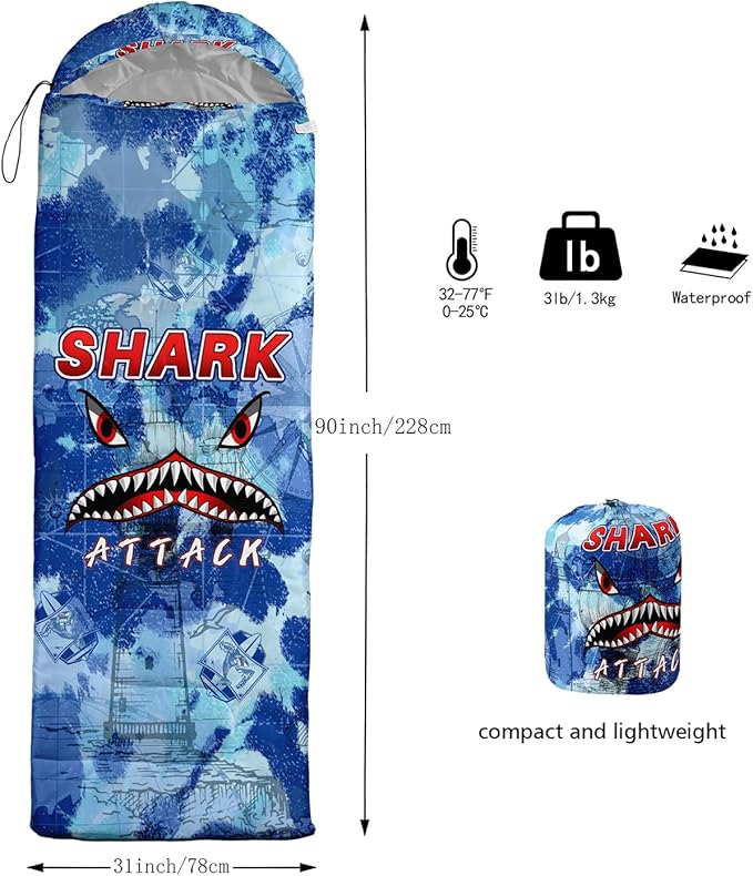 - Premium Material - The camping sleeping bag is made of premium 220T ripstop microfiber fabric,comfortable and breathable,lined with 220T cotton pongee. The waterproof outer protective shell is made of a unique hexagonal design and high-quality Material with double S-stitching and microfiber filling for optimal warmth and insulation to protect you from the elements. The bright colors are loved by boys and girls,great for kids and adults alike!