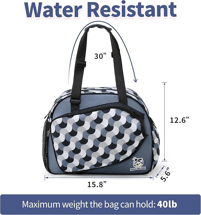 - Premium Pickleball Bag: Boulder Bee pickleball bag is made of 600D oxford nylon cloth outer and 210D nylon interior. Durable and soft material with gliding smooth zippers. Great compact handbag for sports activity. It fits two paddles in the designated paddle holder and has a enough room to hold all your pickleball equipments. Designed for girls pickleball players!