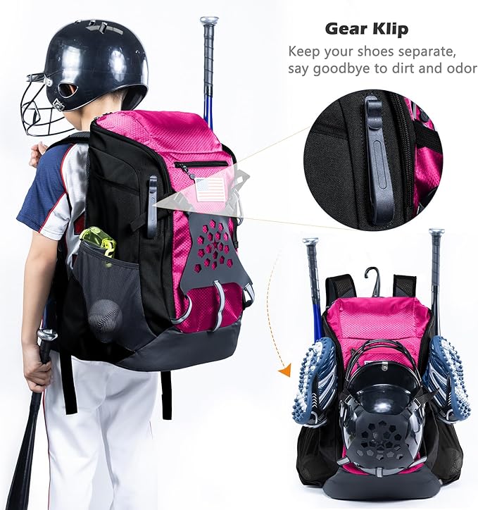 | Baseball Bag Softball Bat Bag, Double-layer Baseball Backpack Adult with Gear Klip To Hold Baseball Glove, Baseball Essential Gear, Youth Baseball Bag for Boys, Girls, Baseball Accessories
