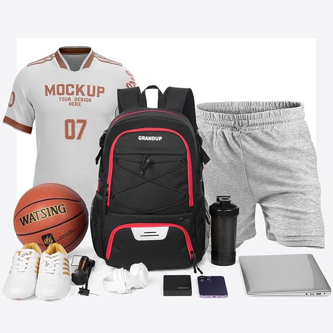 GRANDUP Basketball backpack with ball and shoes compartment Fit Volleyball, soccer, Swim, Gym, Travel, and School, large capacity sports training equipment bags
