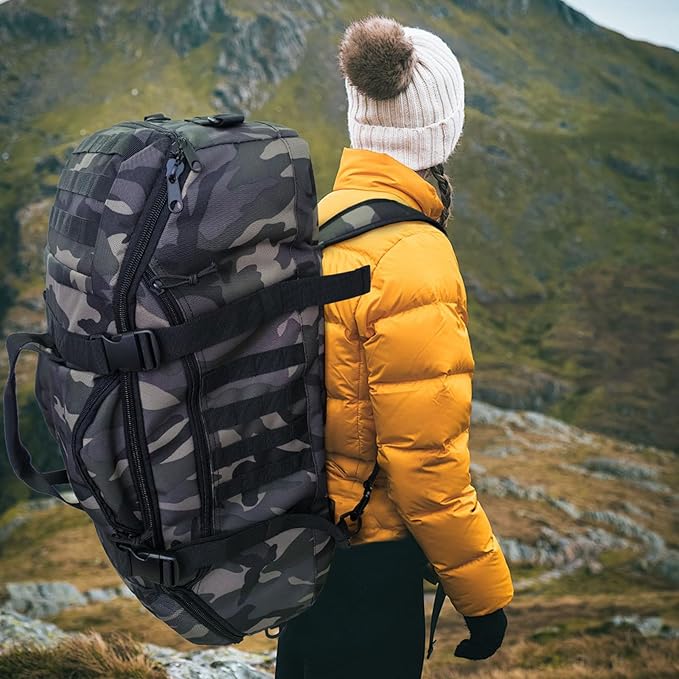 65L Large Travel Duffle Bag Military Tactical Backpack, Army Assault Pack Bug Out Bag Rucksack for Outdoor Sport Hiking Camping with Molle System