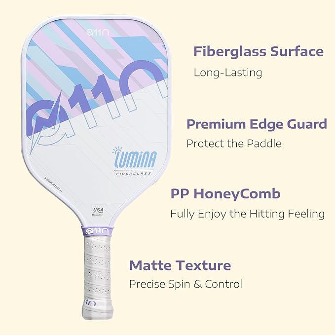 A11N Pickleball Paddles Set of 4 Fiberglass Surface Rackets with 4 Balls and a Bag for Beginners - USAPA Approved, Green & Purple