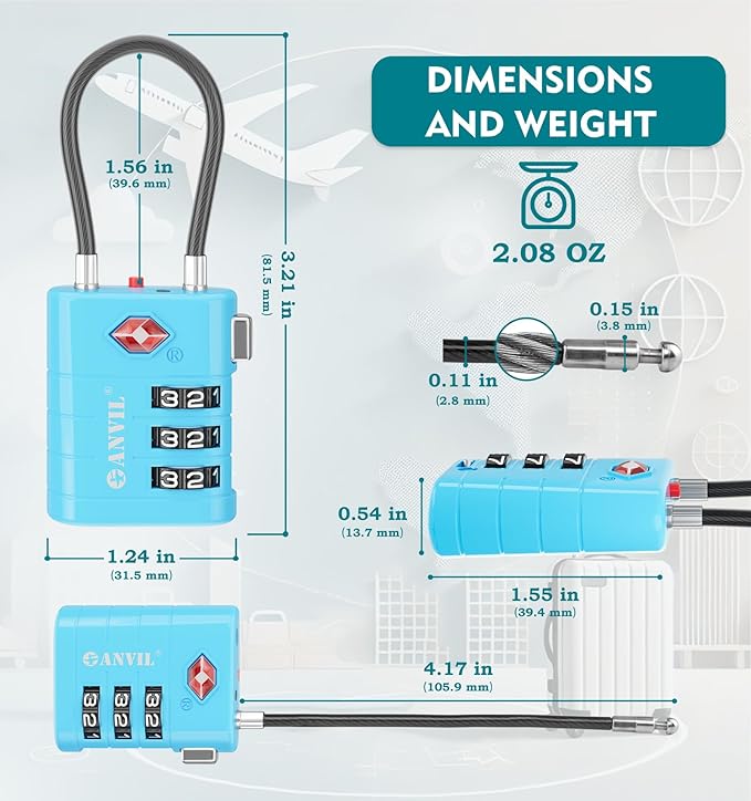- ★ Easy-to-Set Personal Combination: The ANVIL Luggage Lock is designed for ease of use, featuring an easy-to-read dial for quick and accurate combination setup. As one of the top TSA-approved suitcase locks, it ensures no errors while setting your personal code.