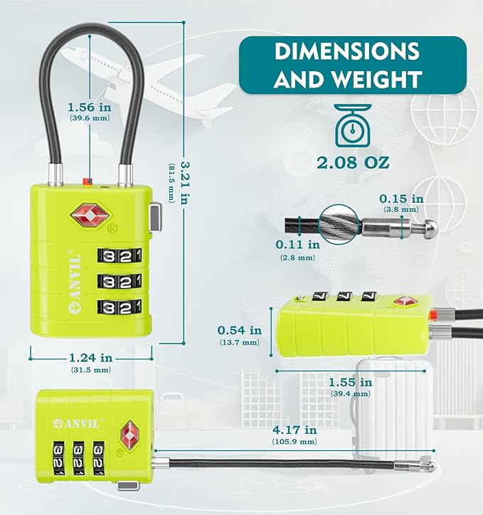 - ★ Easy-to-Set Personal Combination: The ANVIL Luggage Lock is designed for ease of use, featuring an easy-to-read dial for quick and accurate combination setup. As one of the top TSA-approved suitcase locks, it ensures no errors while setting your personal code.