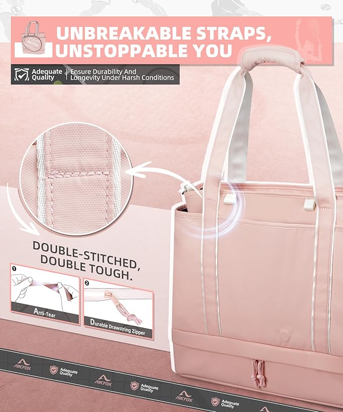 - 【Large Capacity 11 Pockets】: ARCFOX tennis bags for women has 3 compartments tennis rackets, shoes and tennis accessories. The main pocket has 1 wet/dry separator pocket and 2 large mesh pockets to organize small items; 4 external pockets to increase storage space, in fact, one side pocket has added an elastic open pocket inside to store water bottles more securely. Size:19.29*6.3*15.75in/49*16*40cm.