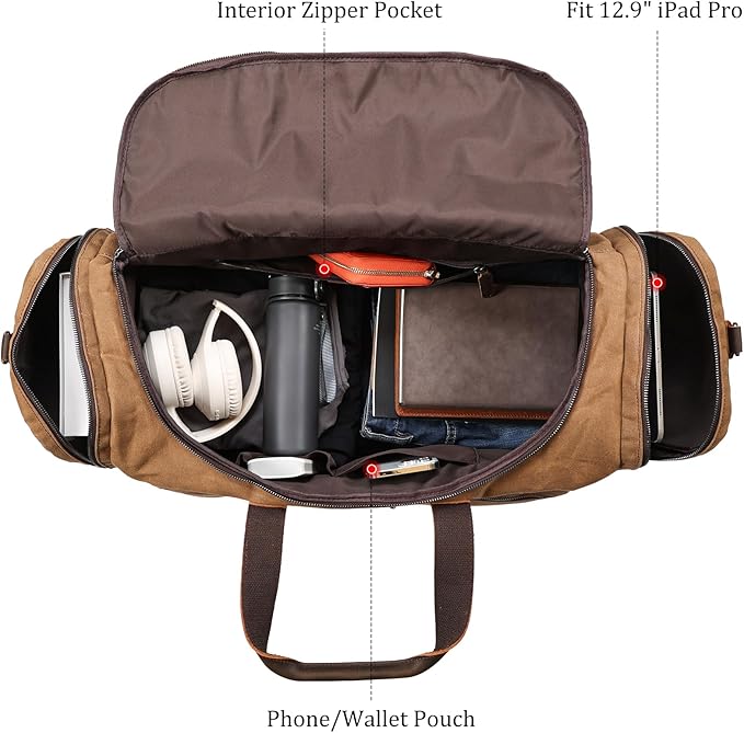- Stylish Vintage Bag: Perfect used as a travelling bag, gym duffel bag, sports duffel bag, business duffel bag, weekender bag, overnight bag, military duffel bag, camping bag, carry-on luggage bag for men and women