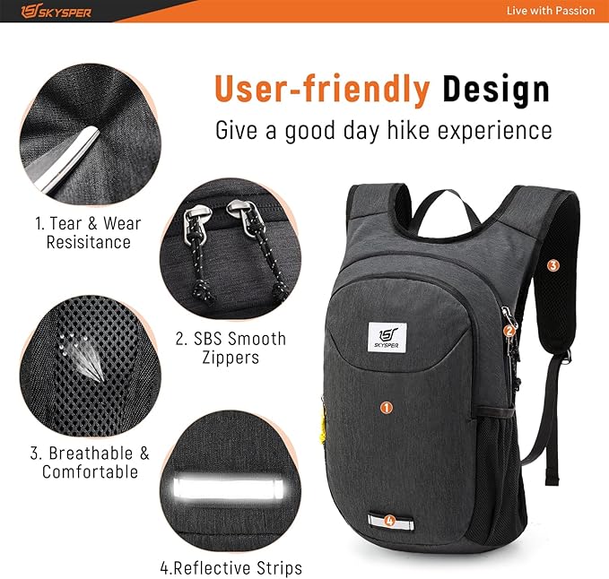 - Well Made and Sturdy Daypack: Crafted from wear and tear resistant polyester, this 10l lightweight backpack is built to withstand the daily use. Smooth zippers and reinforced stitching provide long-lasting performance. Enjoy peace of mind knowing your belongings are secure and your little hiking daybag can handle whatever you throw at it