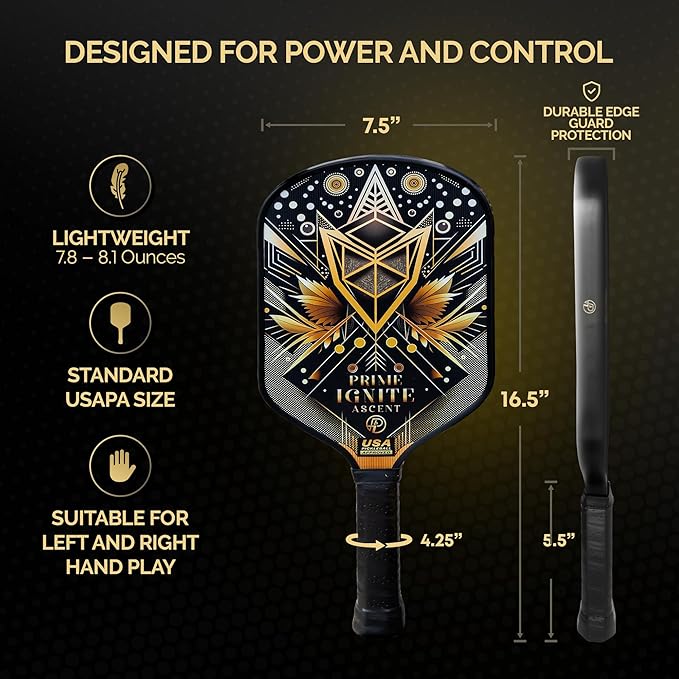 - USAPA APPROVED FOR TOURNAMENT PLAY: The Ascent pickleball paddle meets USAPA standards, ensuring you are ready for both casual matches and official tournaments. Designed to balance power and control, this paddle helps ignite your passion on the court