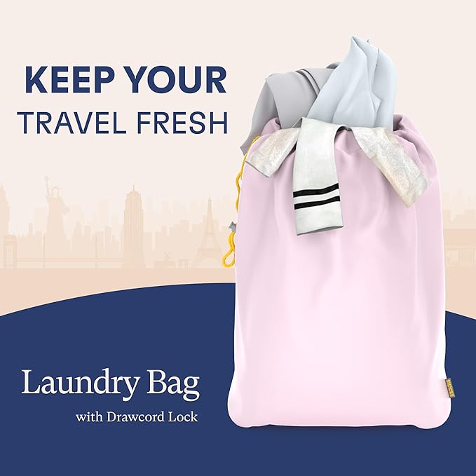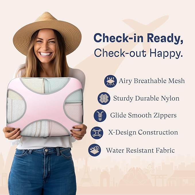 Shacke Premium 5 Packing Cubes Set - Lightweight Mesh Travel Luggage Organizers with Laundry Bag, 5-Piece Suitcase Storage System (Petal Pink)