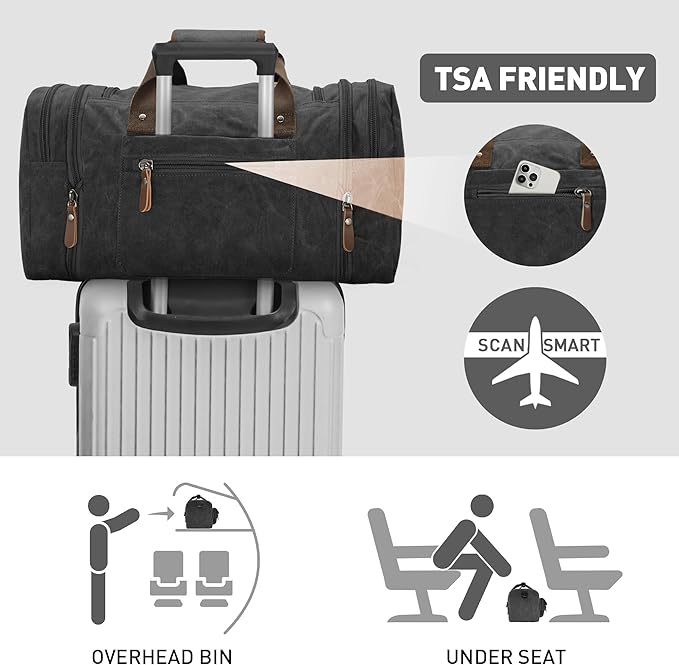 Wildroad 50L Travel Duffel Bag, Expandable Waxed Canvas Genuine Leather Duffle Bag Upgraded Overnight Weekender Bag Carry on Bag (Vintage Black, Large-50L)
