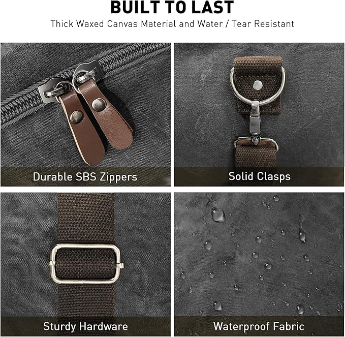 Wildroad 60L Travel Duffel Bag, Expandable Waxed Canvas Genuine Leather Duffle Bag Upgraded Overnight Weekender Bag Carry on Bag (Vintage Black, X Large-60L)