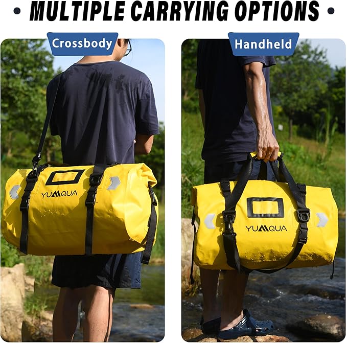 YUMQUA Waterproof Duffel Bag, Motorcycle Duffle Bag, Heavy Duty Roll Top Large Dry Bags Waterproof with Durable Straps & Handle for Travel Outdoor Boating Rafting Kayaking Camping Paddle boarding