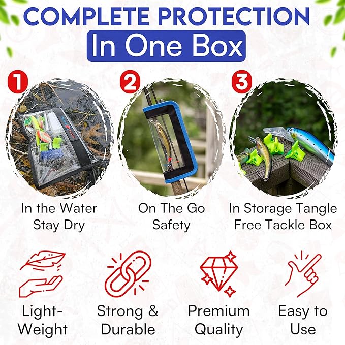 - Tangle-free storage and On-the-go: Our easy-view lure covers and premium fast- snap treble hook guards keep your fishing gear organized, accessible, and free from tangles.