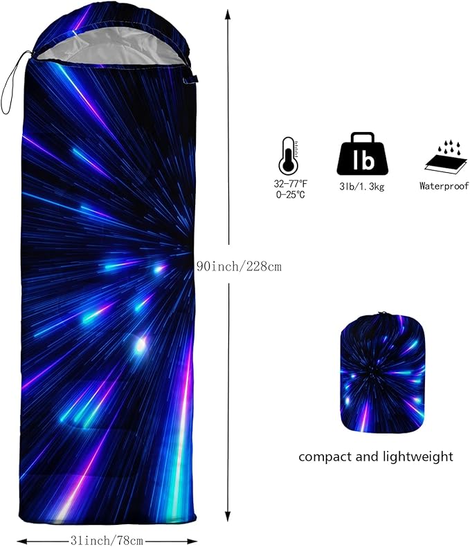 - Applicable For 3 Seasons: Our gradient meteor sleeping bag can be used temperatures ranging from 32°F-77°F Except for the cold winter,sleeping bag have weatherproof to prevent from dampness,Size is 31 x 90 inches