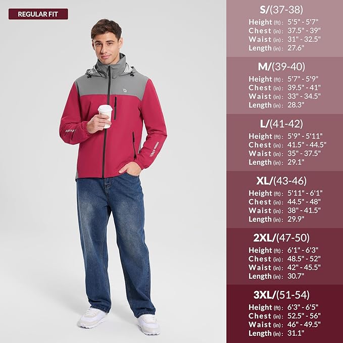 - Multi Pockets & Packable: Mens jacket comes with 1 zippered chest pocket, 2 secure-zip hand pockets and 1 zippered back pocket can are more convenient to secure your items. It can be packed into its own back pocket - stowing away for hiking, bike touring, or any travel.
