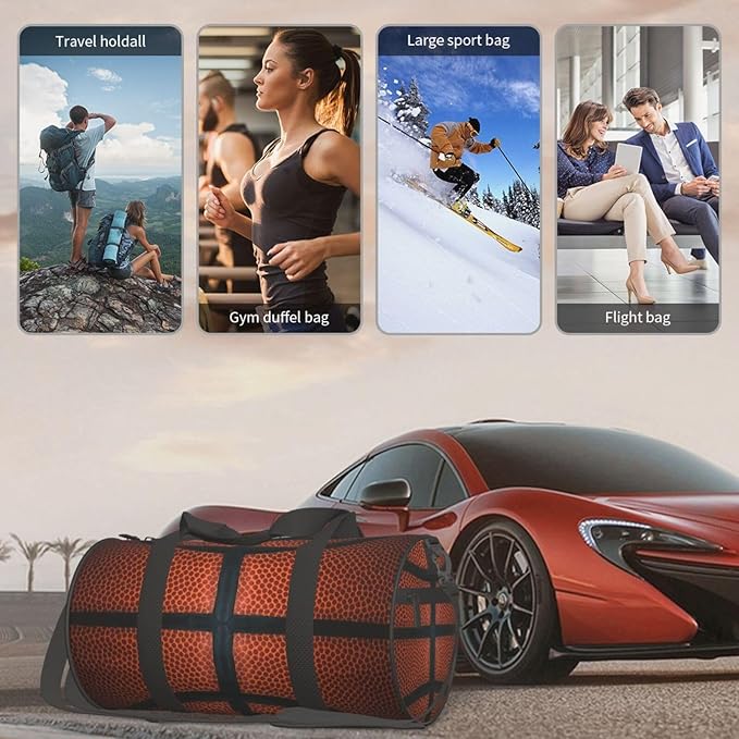 Basketball Ball Sport Appearance Foldable Duffle Bag For Women - Workout Bag For Gym Men - Boy Gym Bag - Girls Small Weekender Duffel Bag - Packable Luggage Bag For Travel Sports