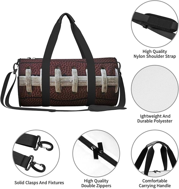 American Football Laces Sport Themed Fun Traditional Foldable Duffle Bag For Women - Workout Bag For Gym Men - Boy Gym Bag - Girls Small Weekender Duffel Bag - Packable Luggage Bag For Travel Sports