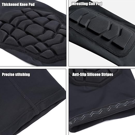 ZODEYI Wrestling Knee Pads Compression Leg Sleeve with Knee Pad and Calf Pad, 1 Pair Knee Sleeve with Shin Guards Shin Pads for Football, Baseball, Rugby, Lacrosse (2, Black, Large)