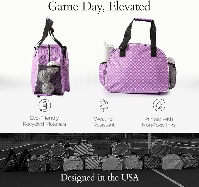 - Eco-Chic & Sustainable Design: Play your game while staying eco-conscious! Made from partially recycled materials and free from harmful inks or bleaches, this sleek pickle ball bag aligns with your values. Look good while contributing to a sustainable future.
