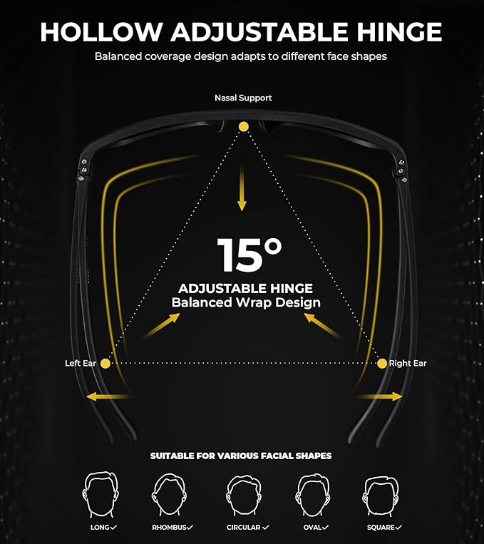 - High Quality Material: Premium Rectangular frame, anti-scratch polarizing lens, adjustable metal spring hinges and integrated nose pad make KALIYADI sunglasses men polarized uv protection more lightweight and durable. All these details of sunglasses polarized ensure the customer have a comfortable wearing experience