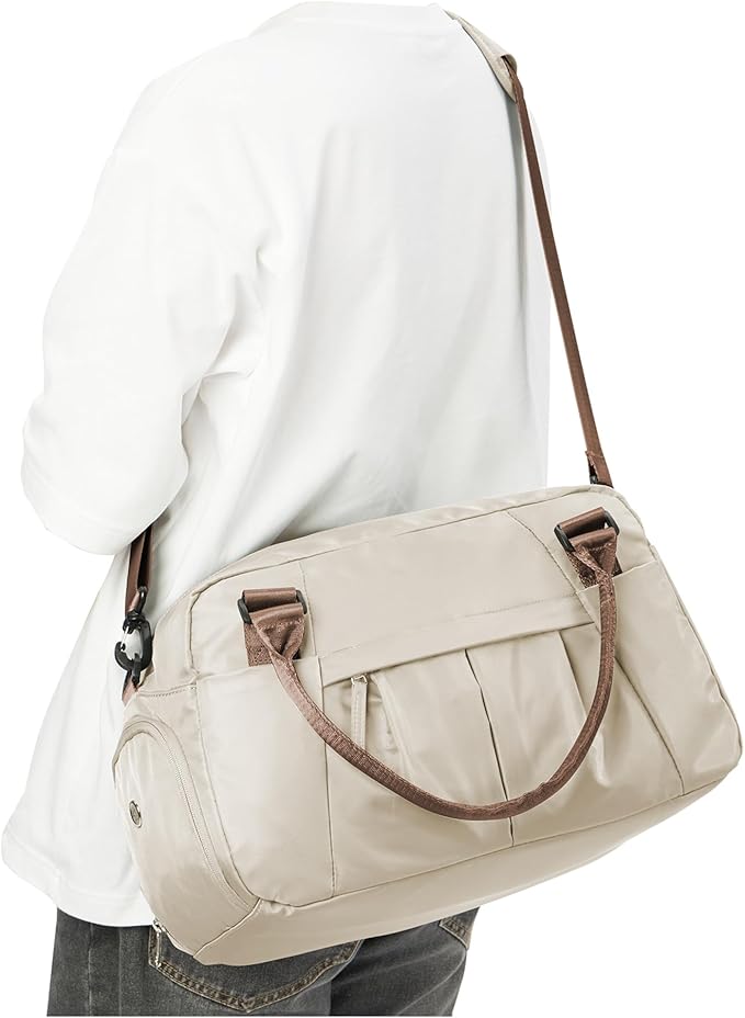 Small Gym Bag with Shoe Compartment, Workout Sport Duffle Bag for Women Travel,Waterproof Shoulder Overnight Bag Lightweight Carry on Tote Bag for Swim, Yoga, Dance, Beige