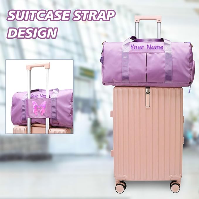 Custom Embroidered Sports Gym Bag, Personalized Duffel Bag Weekender Bag, Overnight Bag, Travel Bag for Women Men - With Shoe Compartment - Dry Wet Separated - Adjustable Shoulder Strap