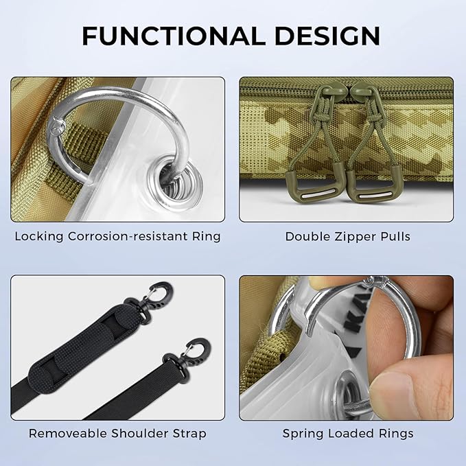 - Durable Construction & Water-resistant Design – Built with tough 900D Oxford fabric and a water-resistant PVC coating, this bait binder protects your tackle from the elements, ensuring long-lasting performance