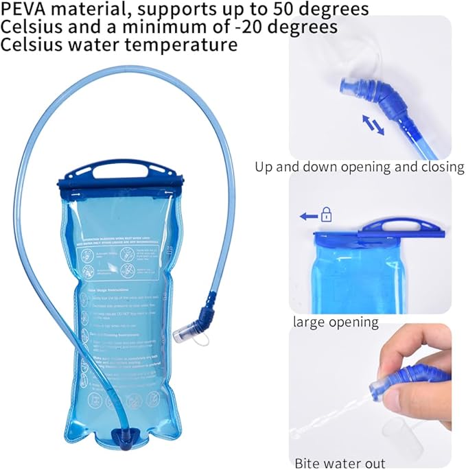 - 【 Professional Design 】 The hidden helmet net design is very suitable for storing bicycle helmets. The shoulder strap is equipped with a water bag and a water pipe for fixed positioning, which can hold a 2L water bag, allowing you to drink water anytime even while riding. Reflective strips provide safety for night driving.