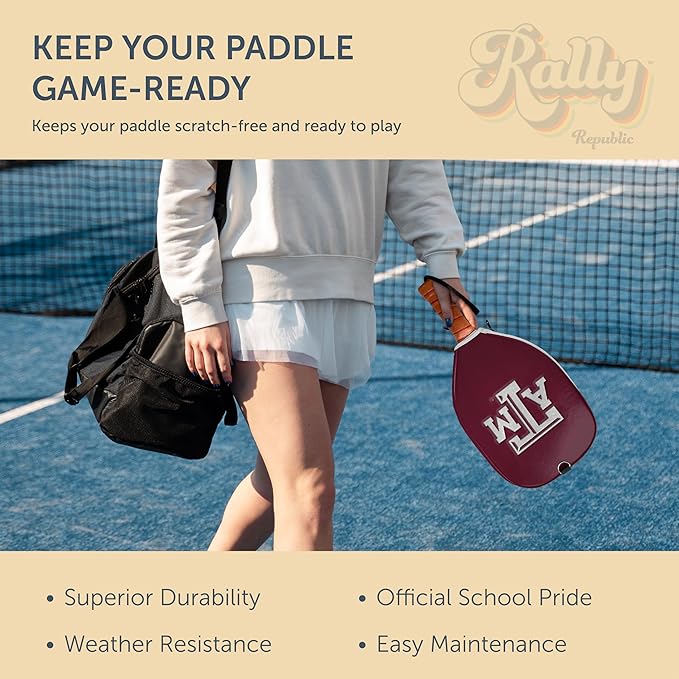 - ๐๐๐๐ข๐๐ข๐๐ฅ ๐๐๐ฑ๐๐ฌ ๐&๐ ๐๐๐ฌ๐ข๐ ๐ง: Show your Aggies pride with this officially licensed pickleball paddle cover by Rally Republic featuring the authentic maroon color and primary logo. Perfect for loyal fans who want to showcase their school spirit on and off the court.