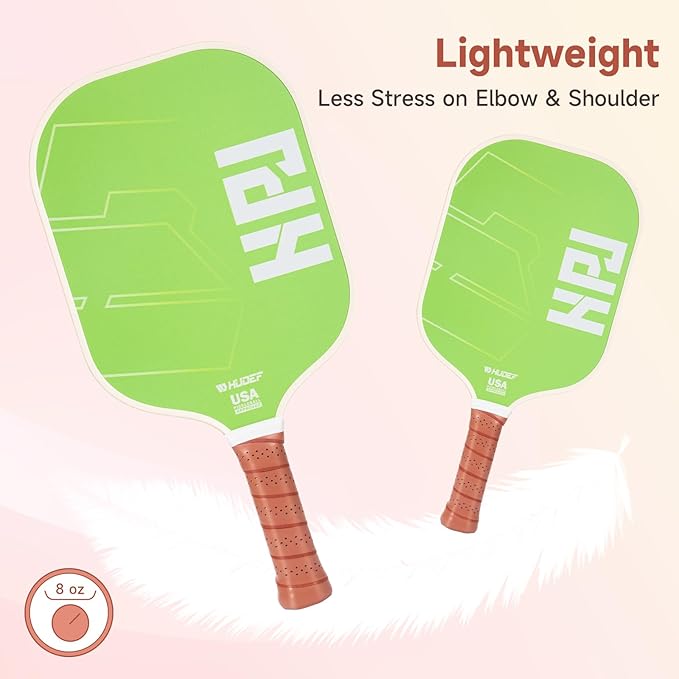 - 【Enhanced Performance Technology】Equipped with cutting-edge honeycomb technology,the HUDEF-HPJ pickle ball paddle boasts a generous sweet spot that not only maximizes power but also significantly reduces vibration.This thoughtful design enhances ball feel and control,empowering players to execute challenging shots with confidence.With its unique combination of superior spin capabilities and advanced control features,this paddle promises an elevated playing experience for those new to pickleball.
