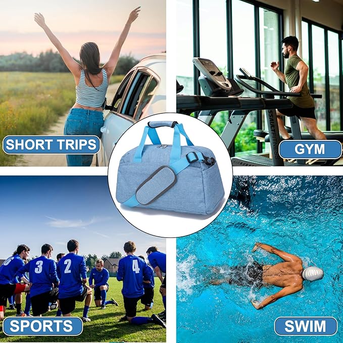 - Multipurpose: This small gym bag is a great personal items bag for gym, travel, sports, short trips,yoga, swim, and more. Suitable for gym bag, mini travel duffel bag, overnight bag, weekender bag, carry on bag etc.