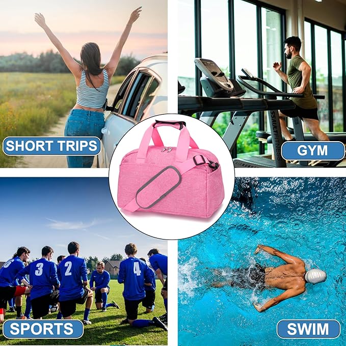 - Multipurpose: This small gym bag is a great personal items bag for gym, travel, sports, short trips,yoga, swim, and more. Suitable for gym bag, mini travel duffel bag, overnight bag, weekender bag, carry on bag etc.