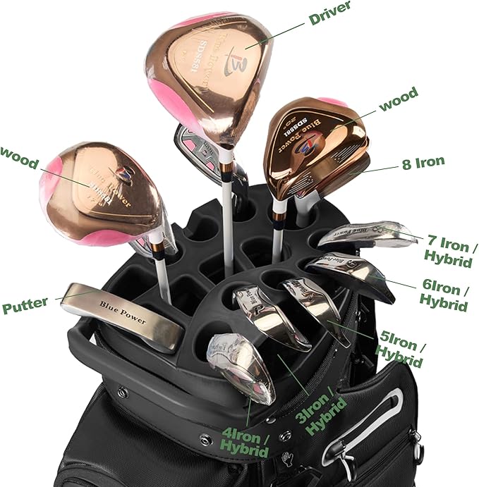 - 14-Way Full-Length Dividers + Putter Well:This golf cart bag features 14 separate compartments with a dedicated putter slot for full protection against impact damage. The putter hole cannot be used when clubs are full, and is suitable for up to 14 clubs at a time
