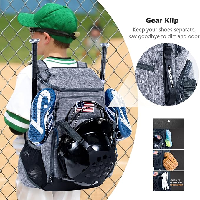| Baseball Bag Softball Bat Bag, Double-layer Baseball Backpack Adult with Gear Klip To Hold Baseball Glove, Baseball Essential Gear, Youth Baseball Bag for Boys, Girls, Baseball Accessories