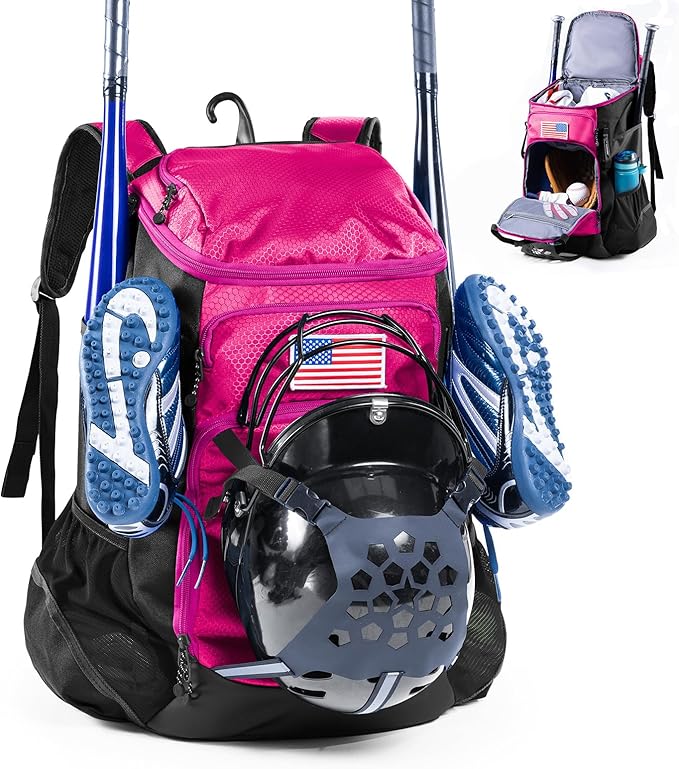 | Baseball Bag Softball Bat Bag, Double-layer Baseball Backpack Adult with Gear Klip To Hold Baseball Glove, Baseball Essential Gear, Youth Baseball Bag for Boys, Girls, Baseball Accessories