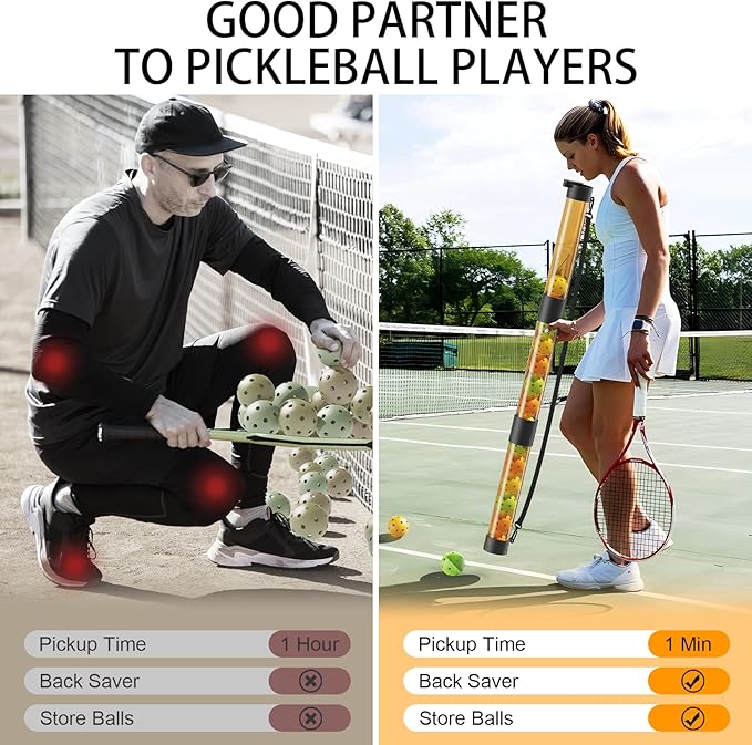- Assemblyable & Suitable for All Heights: Three sections of pickleball retriever can be freely assembled according to your needs. This pickleball tube ball pickup can be used by adults and children, and it is also customized for disabled people in wheelchairs. You can easily pick up the ball without bending down.
