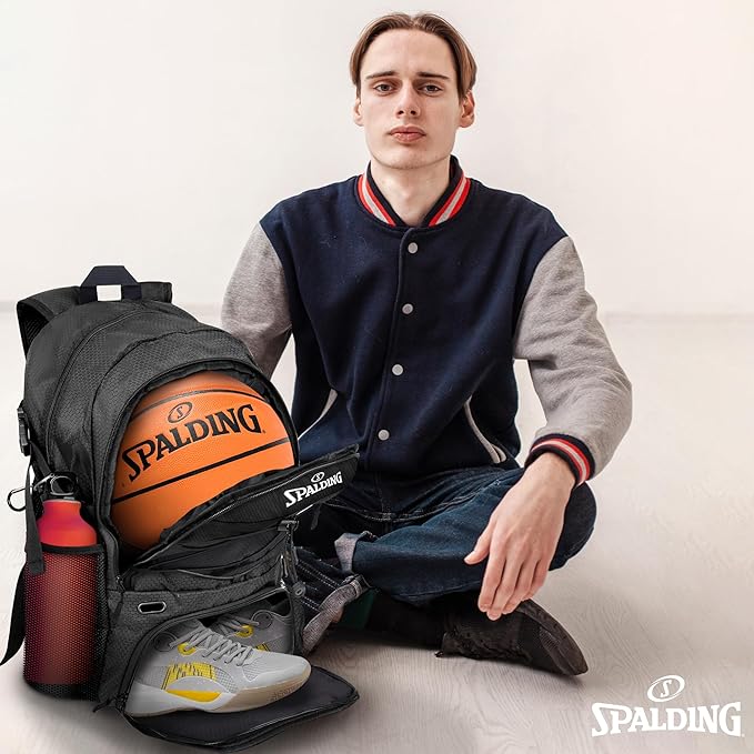 Spalding Basketball Backpack Sports Bag | Large Black Backpack with Shoe and Ball Compartment | Gifts for Basketball Players