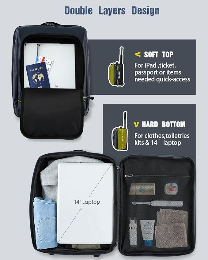 - 16 Inch Underseat and Carry On Size: Fits in most airline overhead compartments and under the seat in front of you, it’s measured (included wheel) 12.2* 8.66*16.14 inch(L*W*H), perfect as underseat carry on luggage for 1-2 day trip with 30L capacity
