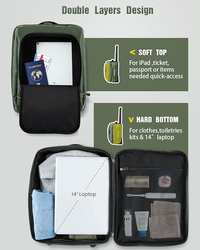 - Considerate Designs: Inner fixable strap helps fix your travel stuff stably in the bag without moving at random. Back with smart sleeve allows bag to be placed over handle of most upright luggage pieces.Back name card holder is convenient to recognize your luggage