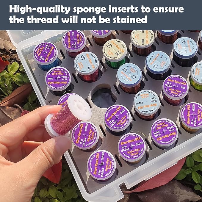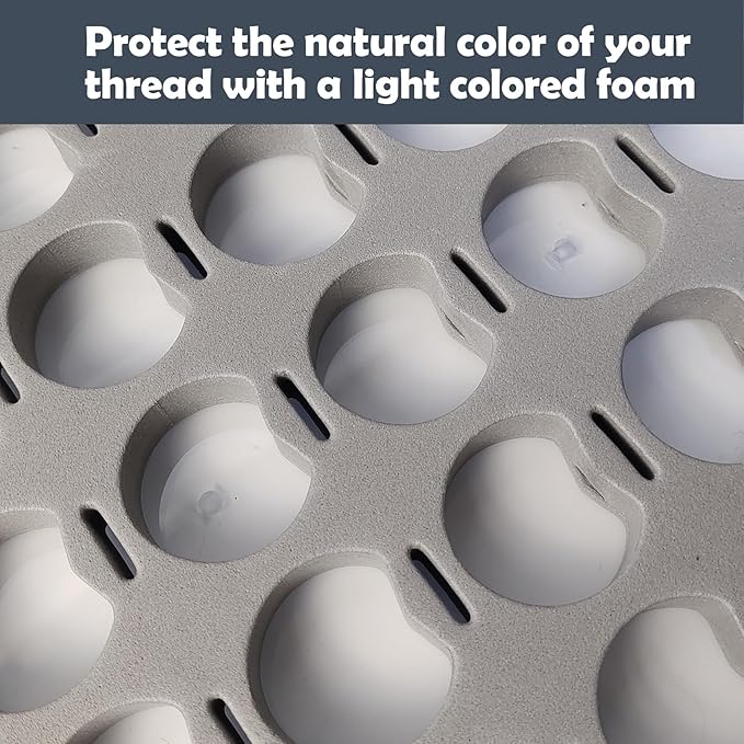 - 3. High-density foam insert holds spools tightly. And will not fade the thread.