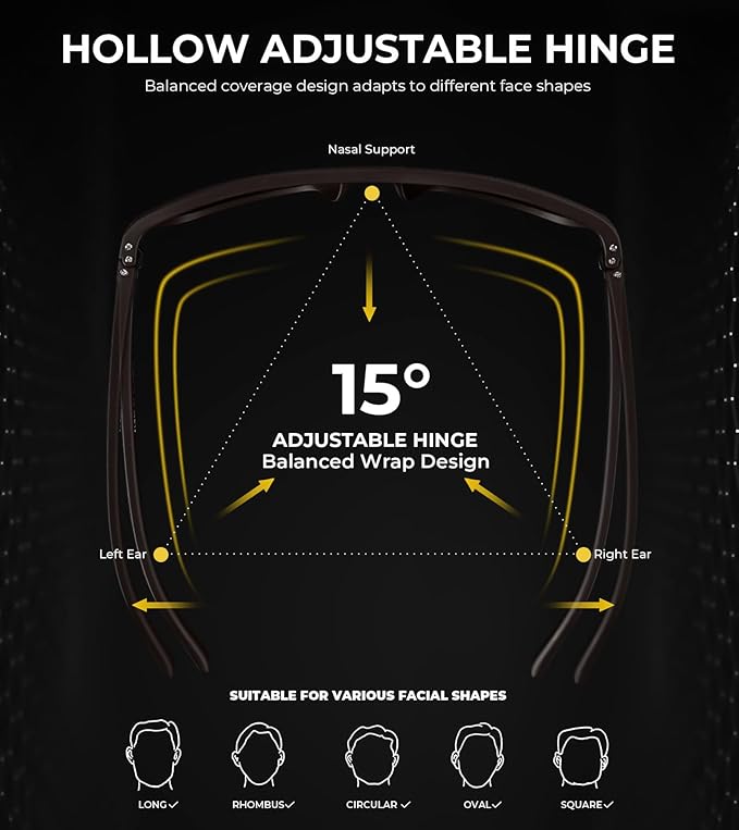 - High Quality Material: Premium Rectangular frame, anti-scratch lens, adjustable metal spring hinges and integrated nose pad make KALIYADI night vision glasses for men more lightweight and durable. All these details of night vision glasses for driving ensure the customer have a comfortable wearing experience.