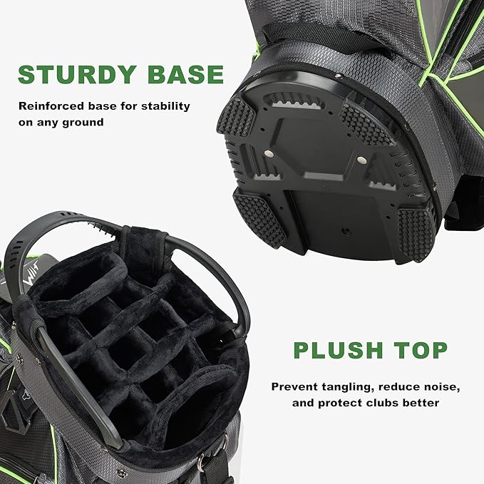 - 14-Way Plush Top: This golf cart bag features a premium plush top and 14-way full-length dividers to prevent club tangling, reduce noise, and provide superior protection for your golf clubs