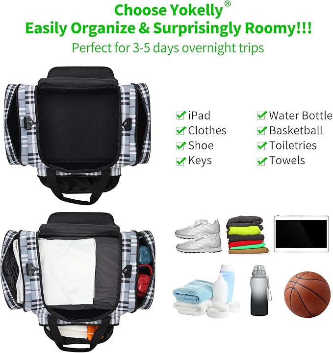 - DURABLE QUALITY: Sports duffel bag is made of strong fabric material with well stitching, and is lightweight. Coated inside will keep the bag contents dry, which is a nice feature for gym bags or overnight bags.