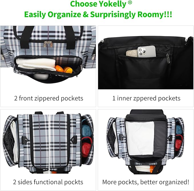 - MULTI POCKETS: Travel duffel bag have up to 6 compartments, 1 main compartment, 2 full size side pockets and 2 extra large front pocket, 1 inner pocket for personal belongings.
