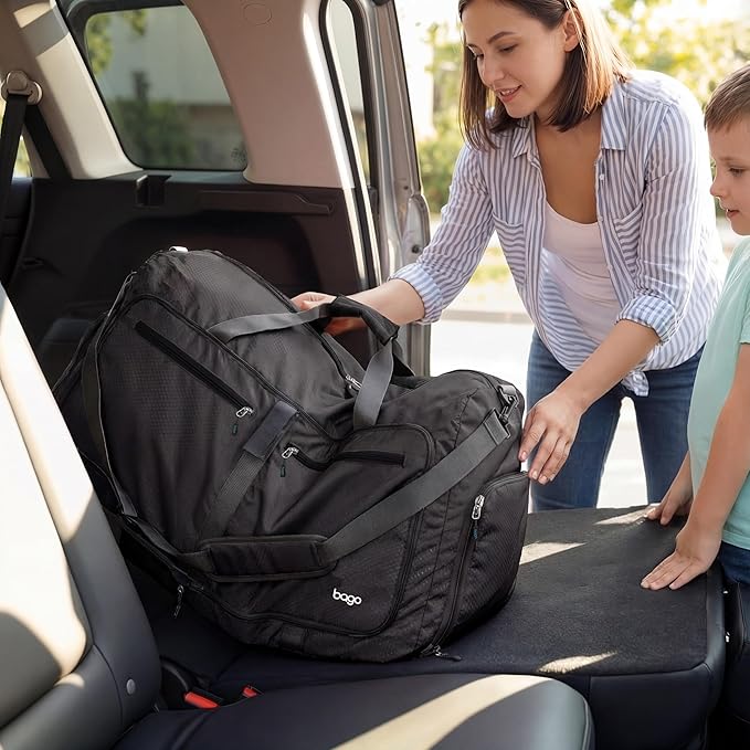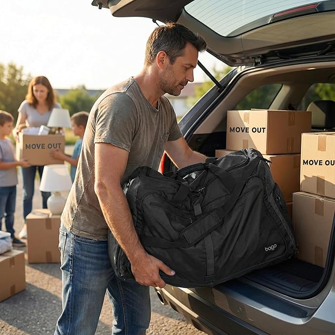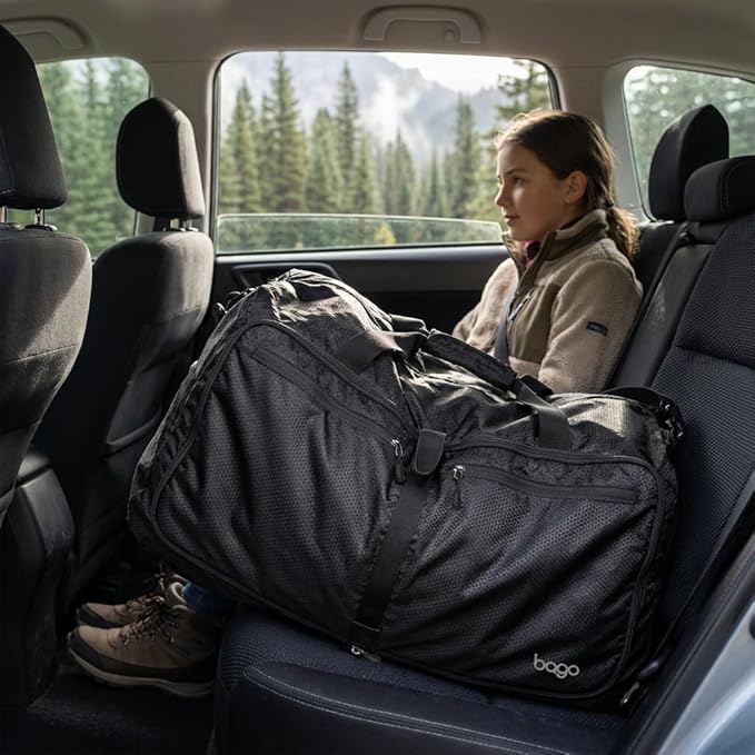 Bago Large Foldable Duffel Bags for Traveling Women & Men - 80L Packable Duffle Bag for Travel with Shoe Compartment - Water Repellant, Heavy Duty, Lightweight Folding & Collapsible (All Black)