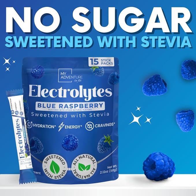 - Quench Your Thirst - Dive into the ultimate hydration experience with our Blue Raspberry Electrolytes Powder. Perfectly crafted to replenish your body, this electrolytes powder no sugar formula ensures every sip is filled with the goodness of electrolytes, making it your go-to hydration partner. Whether you're tackling intense workouts or just need a refreshing drink, our blue raspberry electrolytes deliver on taste and hydration.