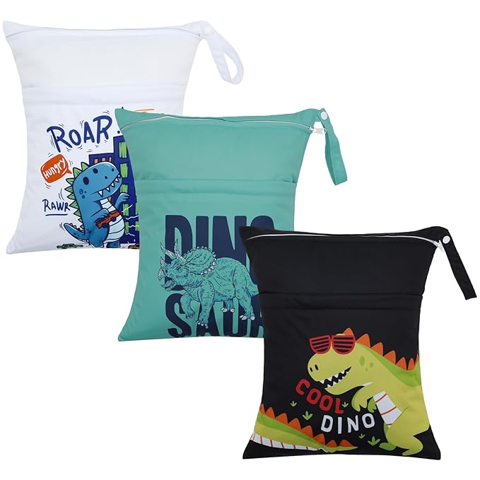 ALVABABY 3pcs Cloth Diaper Wet Dry Bags Waterproof Reusable with Two Zippered Pockets Travel Beach Pool Daycare Soiled Baby Items Yoga Gym Bag for Swimsuits or Wet Clothes 3L-ZM24A
